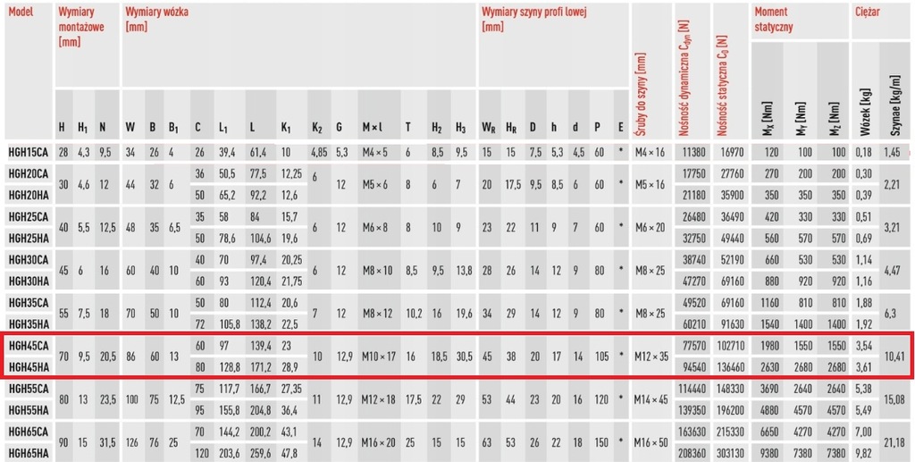 Wózek liniowy HGH 45 CA Z0H HIWIN