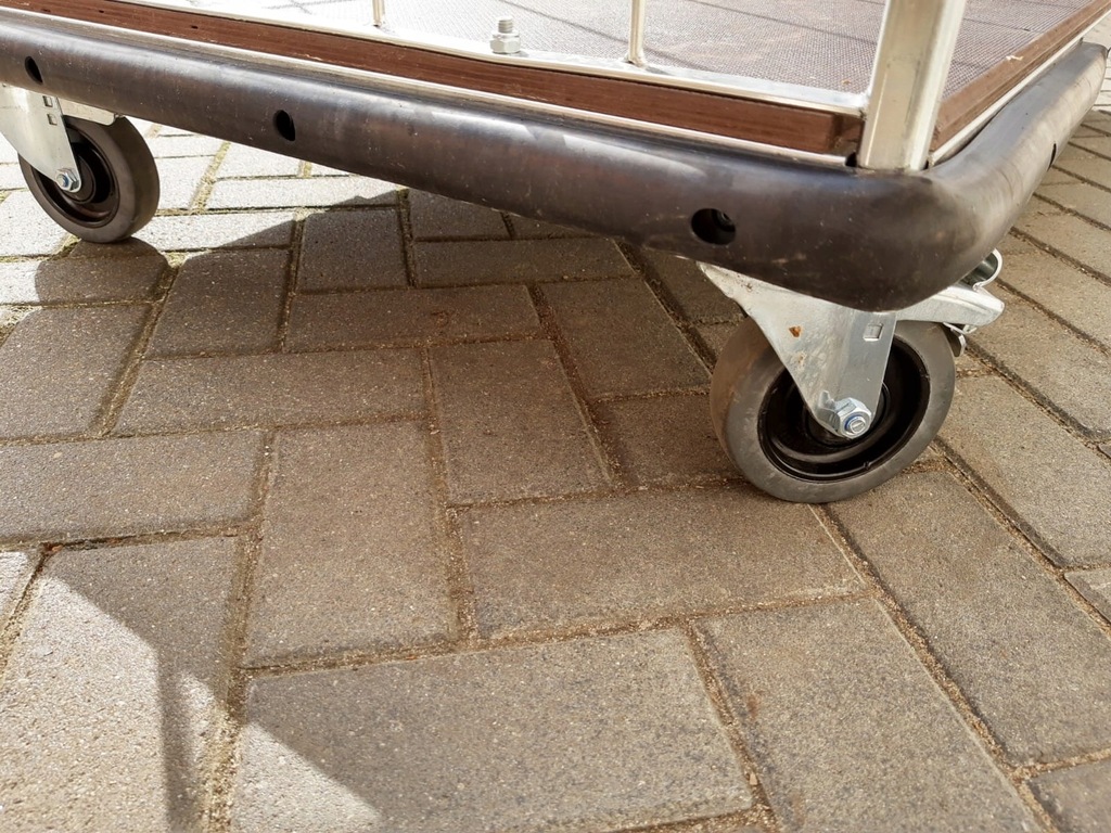 Spód wózka wodoodporny , wózek posiada hamulec oraz 4 kółka.