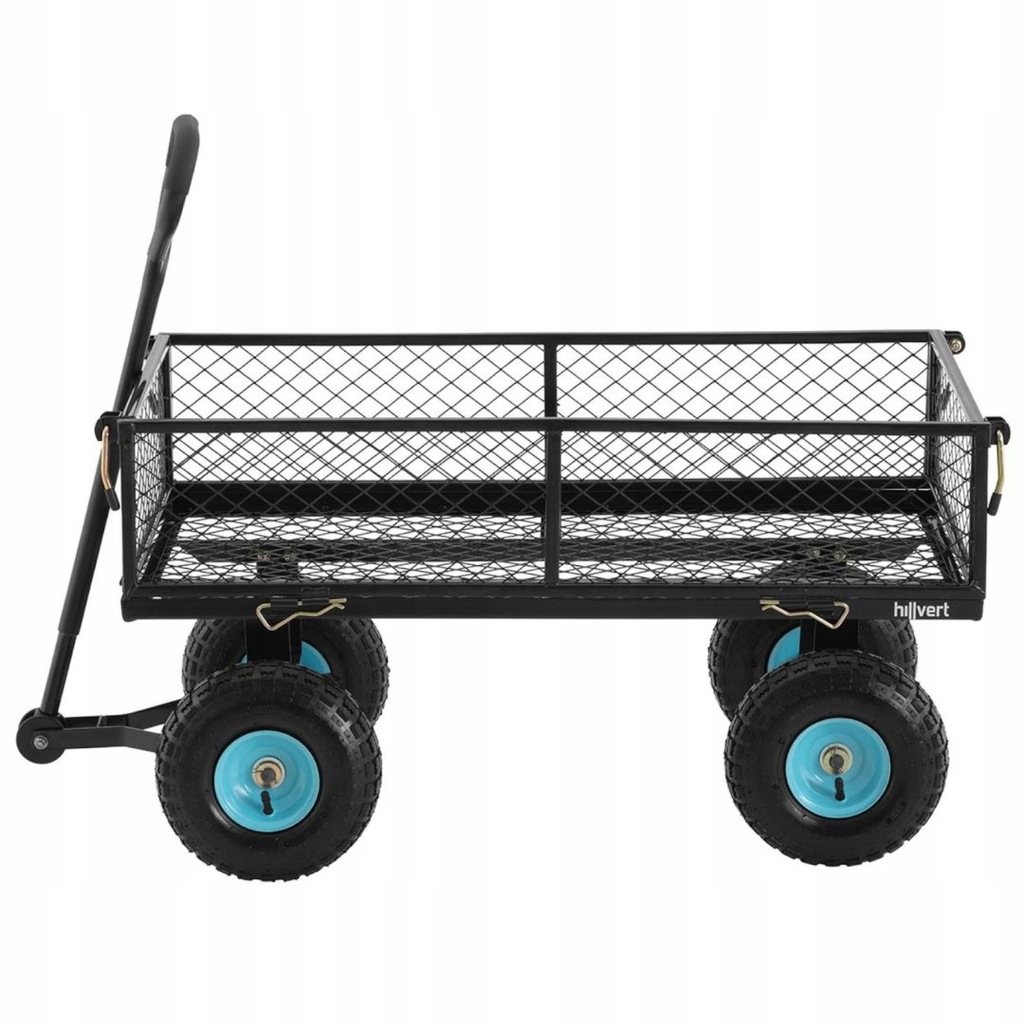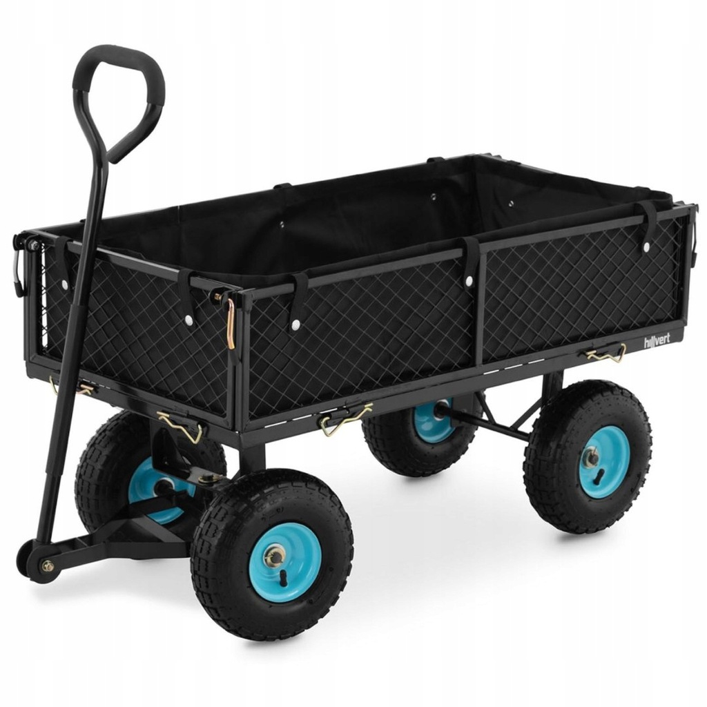 Wózek ogrodowy marki hillvert sprawdzi się we wszelkiego rodzaju pracach w ogrodzie, sadzie, na podwórku, a także w gospodarstwie rolnym czy magazynie. Nośność wózka wynosząca 300 kgoraz plandeka z odpornego na wilgoć i łatwego do wyczyszczeniaPVC pozwala na transport produktów typu ziemia ogrodowa lub nawóz. Sprzęt świetnie nadaje się także do zbioru plonów. Boki stalowej ramy można rozłożyć, tworząc praktyczną platformę. Wózek posiada duże koła, które świetnie radzą sobie w każdym terenie.