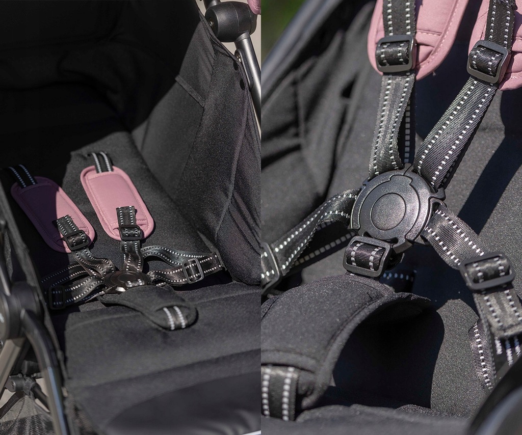 Dla większego komfortu, zarówno na pasach, jak i na klamrze, umieszczono miękkie osłonki, które zapobiegają otarciom i uciskom, dzięki czemu dziecko może cieszyć się wygodą podczas spaceru. W zestawie znajduje się również osłonka na nóżki, która doskonale sprawdza się w chłodniejsze dni, chroniąc dziecko przed zimnem i wiatrem