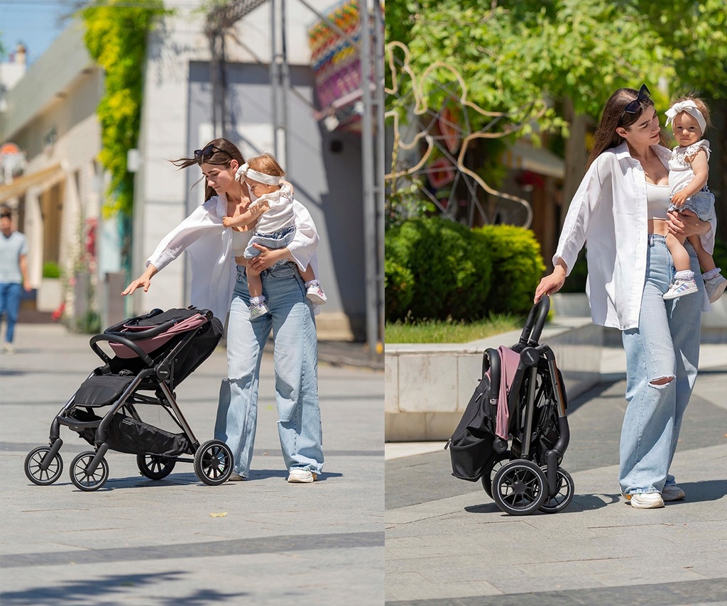 Co istotne, cały proces składania można wykonać jedną ręką, co sprawia, że obsługa wózka jest wyjątkowo wygodna, zwłaszcza dla rodziców, którzy często muszą radzić sobie z wieloma rzeczami jednocześnie. Taki system sprawia, że wózek jest doskonałym rozwiązaniem na co dzień, kiedy liczy się szybkość i prostota działania, np. podczas wkładania go do bagażnika samochodu czy wnoszenia po schodach.
