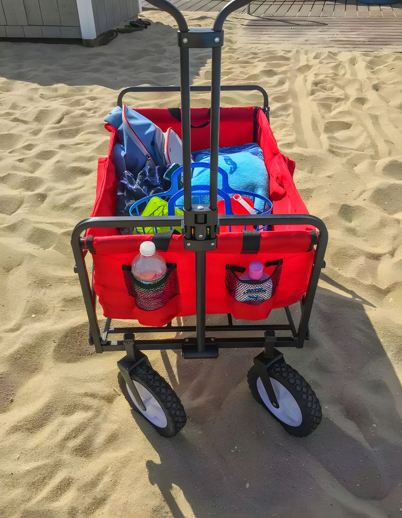 Ten praktyczny wózek to idealne rozwiązanie, które ułatwi Ci pracę w ogrodzie, przewożenie zakupów, a jego funkcjonalność docenią również wszyscy miłośnicy plażowania. Wygodna rączka, możliwość składania i solidny metalowy stelaż to tylko niektóre z jego zalet. Niezależnie od tego, czy przewozisz zakupy, narzędzia, bagaż, czy sprzęt plażowy, ten wózek doskonale sprawdzi się i odciąży Cię w każdej sytuacji.