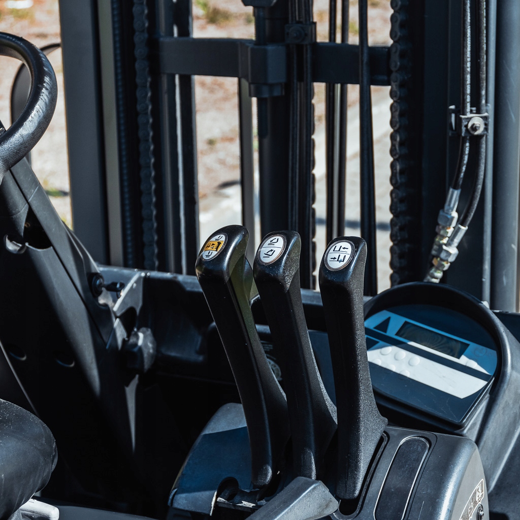 Trzy sekcje hydrauliczne, wózek posiada przesuw.