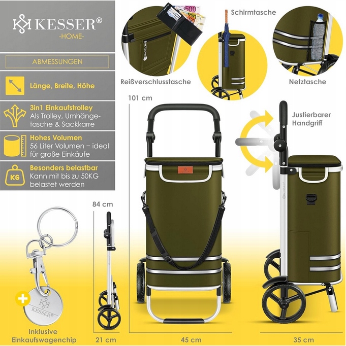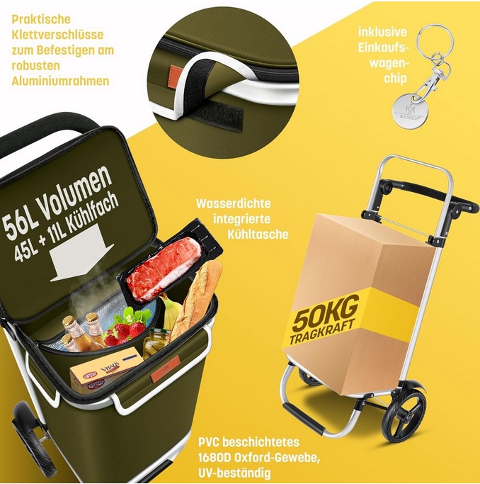 ✅ KESSER Wózek na zakupy z dużą przestrzenią ładunkową, wysokiej jakości materiałami, wszechstronnym zastosowaniem, wbudowaną chłodziarką i elementami odblaskowymi – idealny towarzysz na wygodne i bezpieczne zakupy