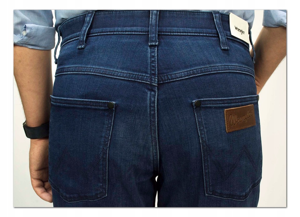 Perfekcyjne wykończenia i najwyższej jakości jeans, gwarantuje marka Wrangler.