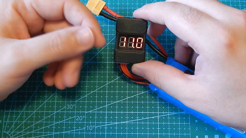 Wystarczy podłączyć wtyczkę balansera, a dioda LED będzie przełączać się między całkowitym napięciem, a także indywidualnymi napięciami ogniw