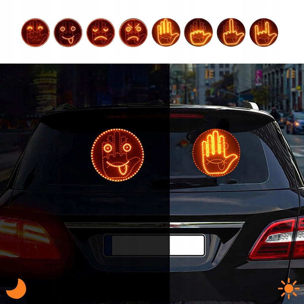 - Ulepszona konstrukcja 2 w 1, w połączeniu z 4 trybami świateł samochodowych i 4 trybami świateł ekspresji, pomaga przypominać i przyciągać uwagę innych kierowców, a także natychmiastowo pokazywać im, jak się czujesz, w bezpieczny i zabawny sposób.