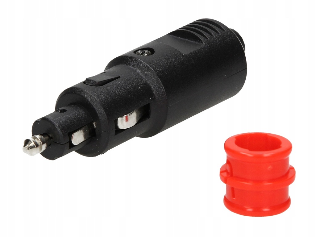 Wtyk do gniazda zapalniczki samochodowej wyposażony w bezpiecznik (wymienny) oraz zdejmowaną czerwoną końcówkę co umożliwia użycie wtyczki do gniazd typu EURO oraz DIN. Uniwersalna wtyczka umożliwiająca podłączenie urządzeń elektrycznych do gniazda zapalniczki samochodowej z prądem stałym 12 V /24 V m.in. sprzęt CB.