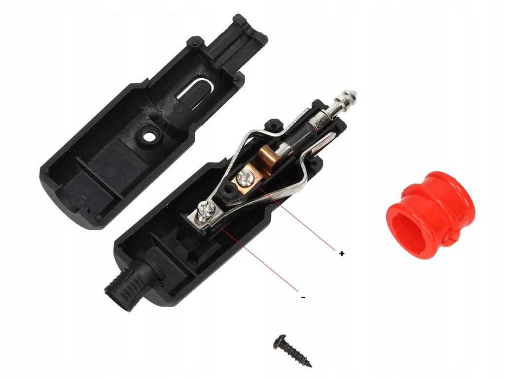 Wtyk zapalniczki X8B po zdjęciu adaptera i rozkręceniu obudowy umożliwia szybki montaż przewodu plus oraz minus poprzez zakręcenie. Opcjonalnie możesz również zalutować umieszczony przewód na stałe.