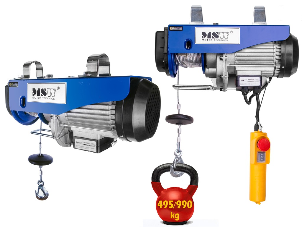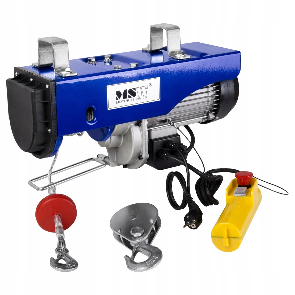 Profesjonalna wciągarka linowa z silnikiem elektrycznym niemieckiego producenta MSW. Dźwig magazynowy charakteryzuje się wytrzymałą konstrukcją, znakomitymi parametrami, łatwością montażu i obsługi oraz bezpieczeństwem użytkowania. Urządzenie wykonane jest z wytrzymałej stali, malowanej proszkowo. Korpus silnika wykonany jest z prasowanego ciśnieniowo aluminium.