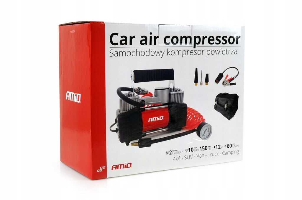 WYDAJNY KOMPRESOR SPRĘŻARKA AMiO 12V 60L/MIN 10BAR