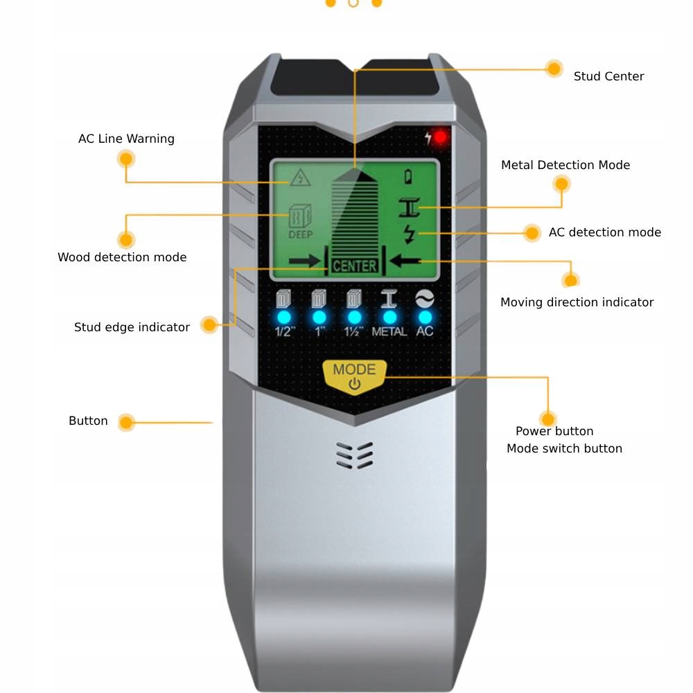 WYKRYWACZ DETEKTOR PRZEWODÓW ELEKTRYCZNYCH KABLI RUR METAL DREWNA W ŚCIANIE (17751308088)