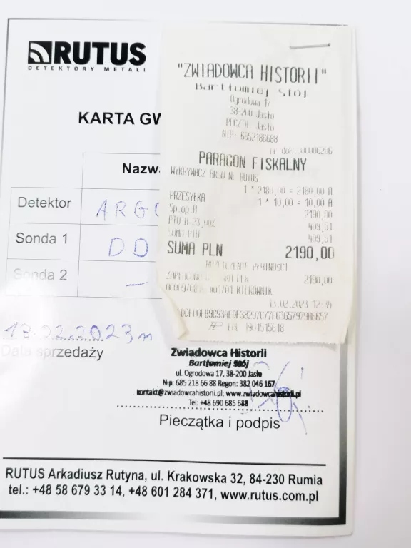 Witamy serdecznie!PRZEDMIOTEM AUKCJI JEST: WYKRYWACZ METALI RUTUS ARGO NE + PARAGON