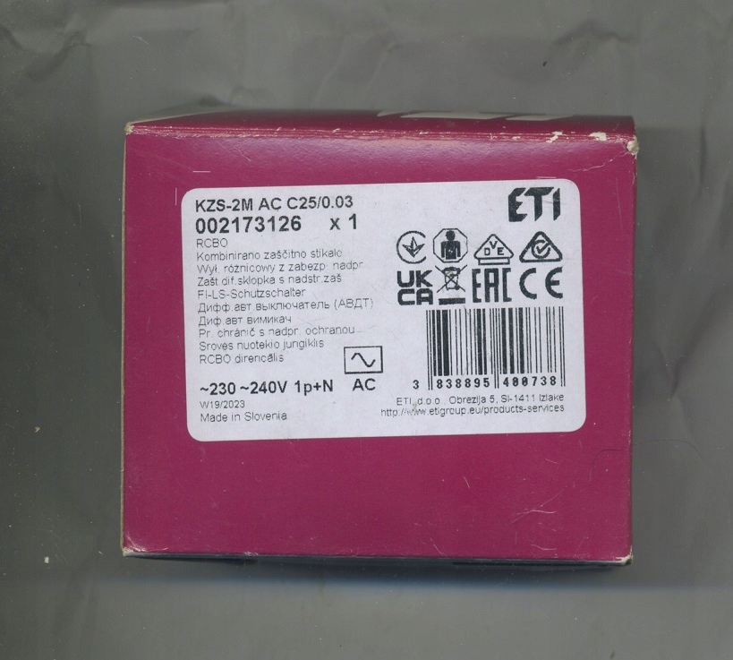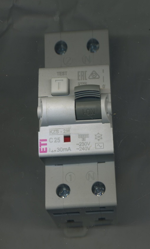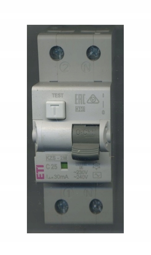 Wyłącznik różnicowo nadprądowy Nr 002173126 typ AC C-25A 1P+N 30mA (2-polowy C-25A 0.03A) firmy ETI Polam