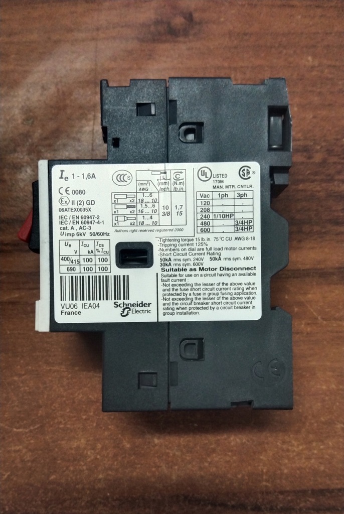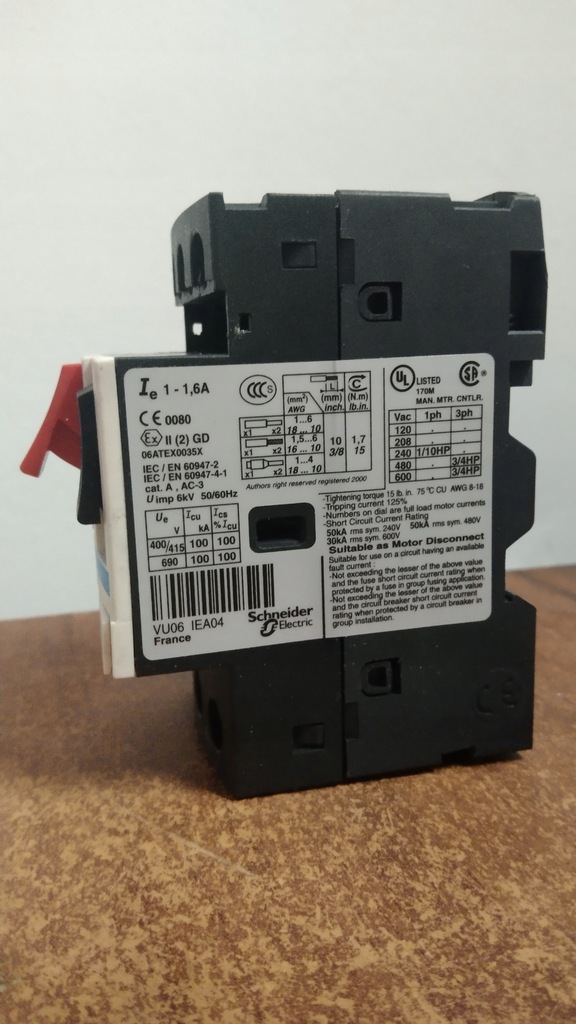 Zakres nastaw wyzwalacza nadprądowego: 1 - 1,6A