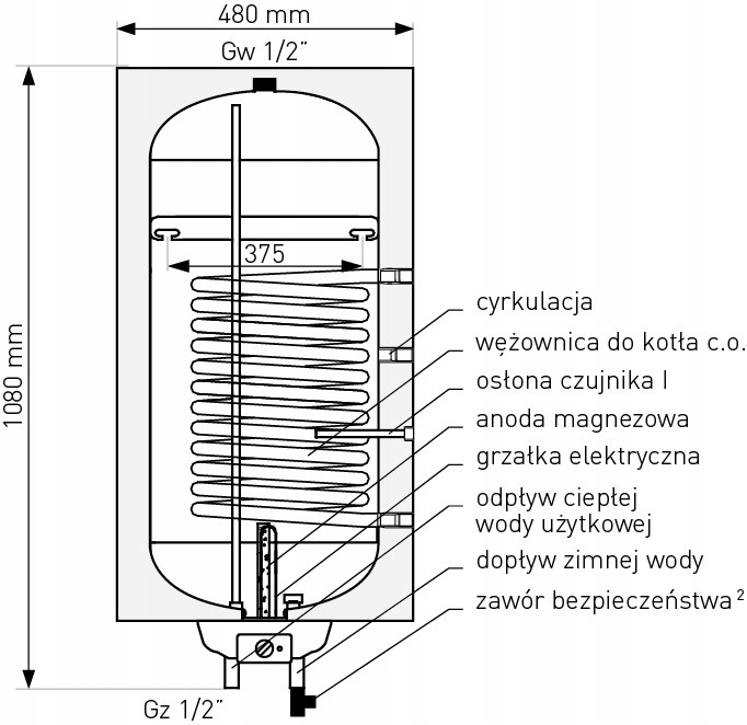 Wymiennik c.w.u. SGWS NEPTUN2 Kombi 100L NEW prawy, wężownica spiralna, grzałka elektryczna, pianka poliuretanowa, płaszcz metalowy, wiszący