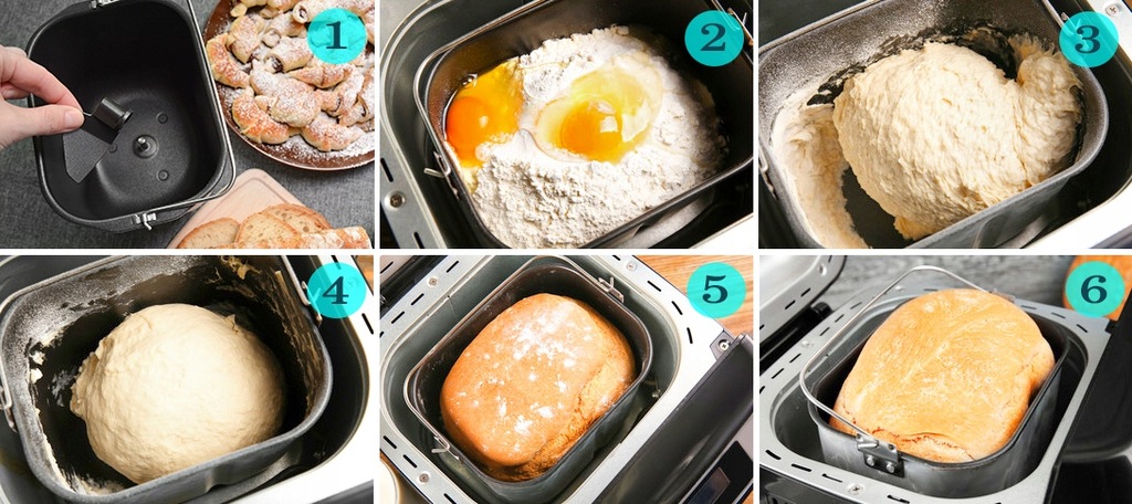 Przygotuj kilka podstawowych składników, takich jak mąka, woda, jajka, cukier, sól, drożdże plus Twoje ulubione dodatki. Wrzuć je do wypiekacza, wybierz odpowiedni program i już dalej wyręczy Cię automat, który zajmie się równomiernym wyrobem ciasta a Ty wkrótce będziesz cieszyć się jego niepowtarzanym smakiem!
