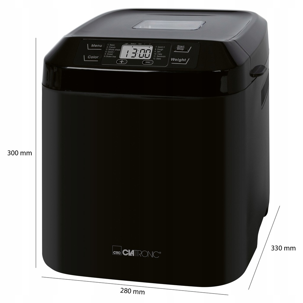 Dzięki urządzeniu Clatronic BAA 3305 mamy możliwość pieczenia chleba o wadze aż do do 1500 g. Maszyna do wypieku chleba nadaje się również do przygotowywania dżemów czy ciast surowych.