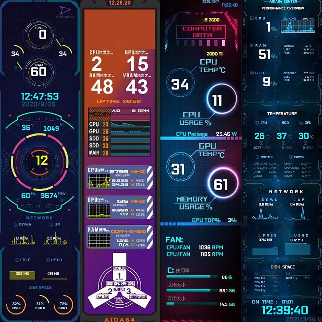2. Wyświetlacz: może wyświetlać nie tylko użycie procesora, karty graficznej, pamięci RAM i temperaturę, ale także prędkość Internetu, datę, godzinę, głośność, prognozę pogody.