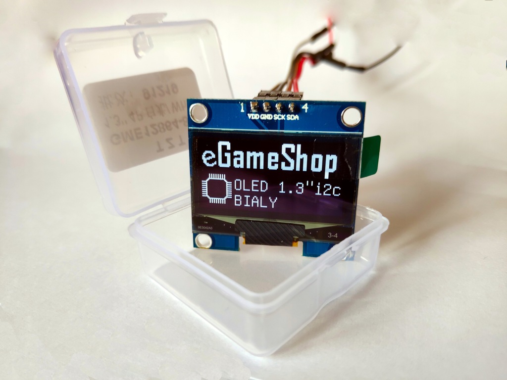 Wyświetlacz OLED o rozdzielczości 128 x 64 i przekątnej 1,30 cala.