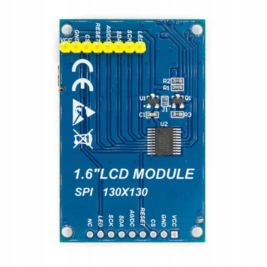 Moduł z wyświetlaczem TFT o przekątnej 1,6" i rozdzielczości 130 x 130 pikseli. Dzięki wbudowanemu kontrolerowi, sterowanie obrazem jest niesamowicie proste. Dodatkowo kontroler zapewnia komunikację po interfejsie SPI, więc wymagana ilość pinów mikrokontrolera jest niewielka.