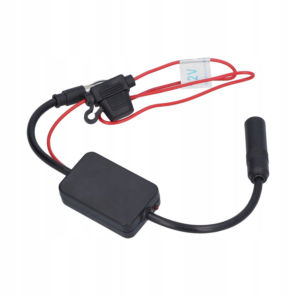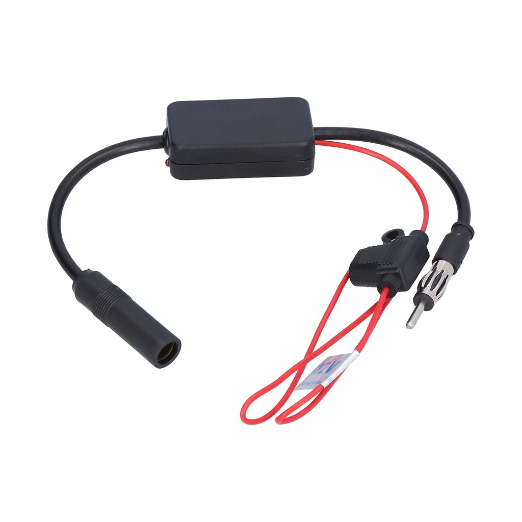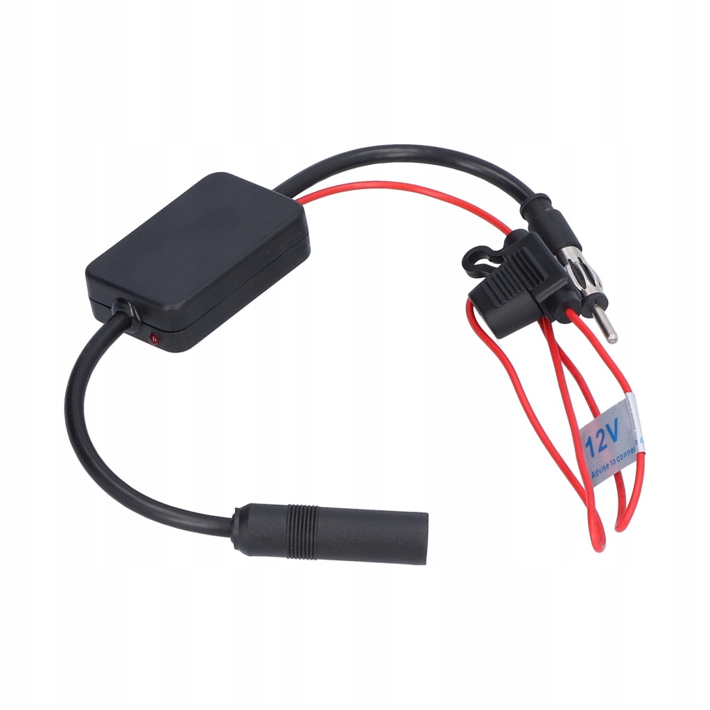 Podłącz czerwony przewód do dodatniego bieguna zasilacza 12 V, podłącz wzmacniacz między radiem a anteną i podłącz bezpośrednio.
