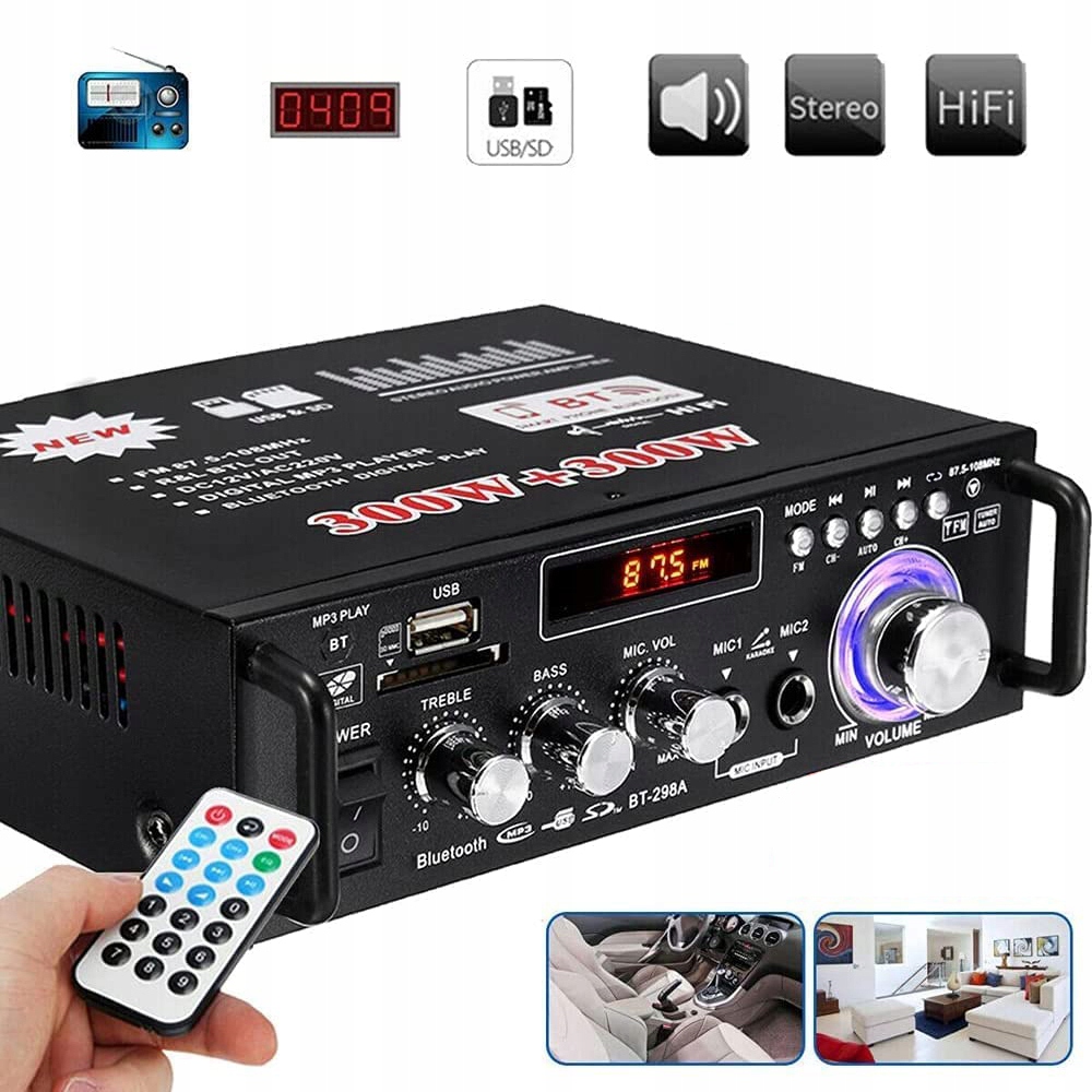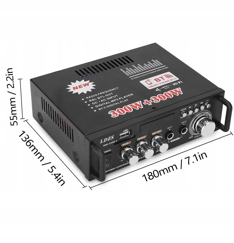 🔊 Wzmacniacz stereo 2-kanałowy oferuje wyjście 300W 300W (maksymalna moc wyjściowa muzyczna 600W), zapewniając doskonałą jakość dźwięku, czysty i szczegółowy.