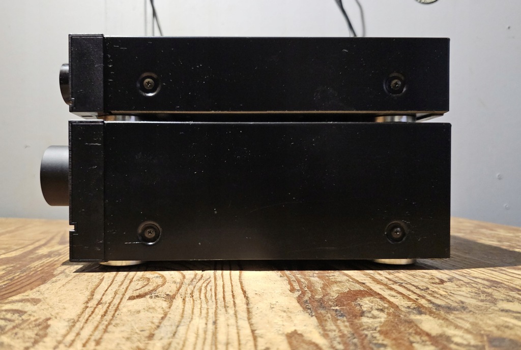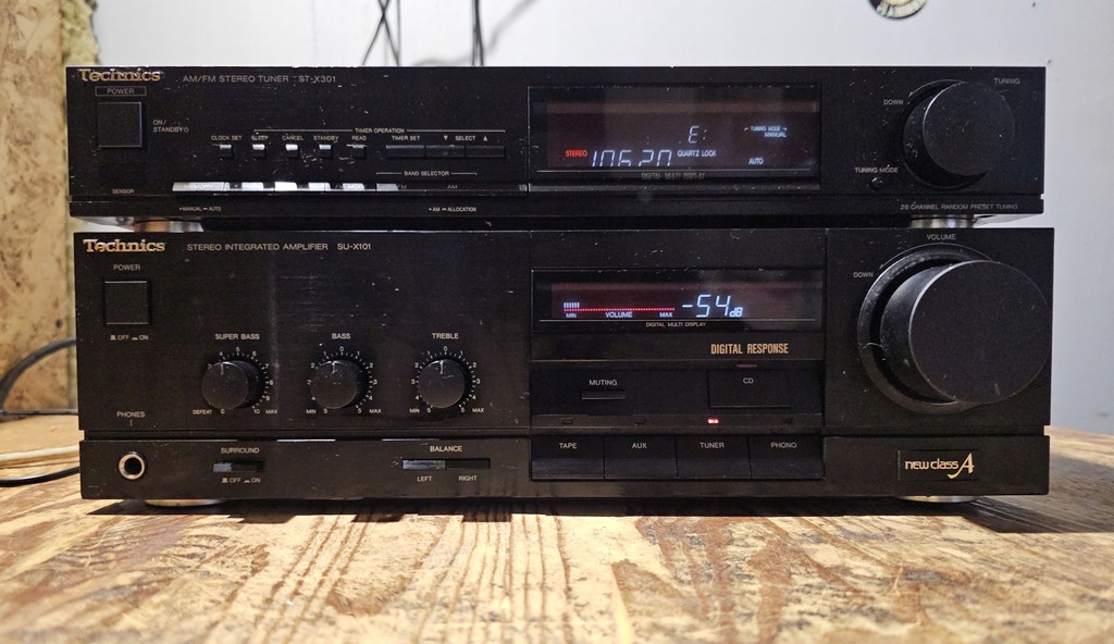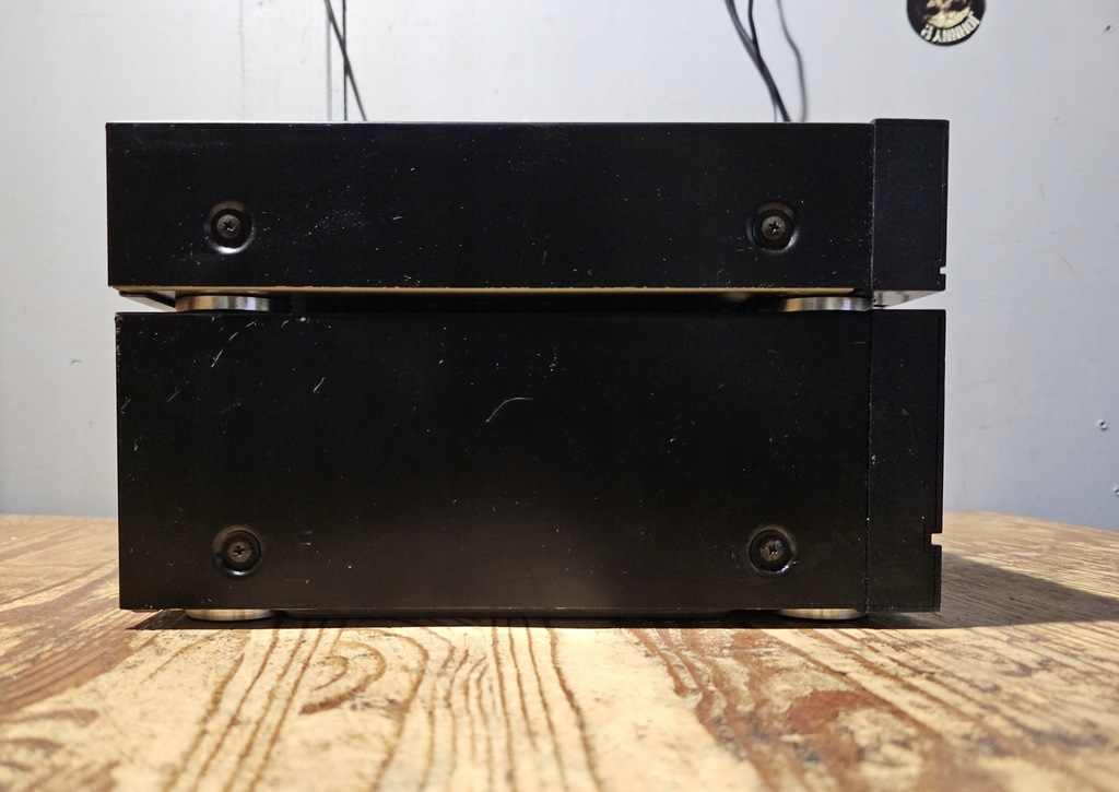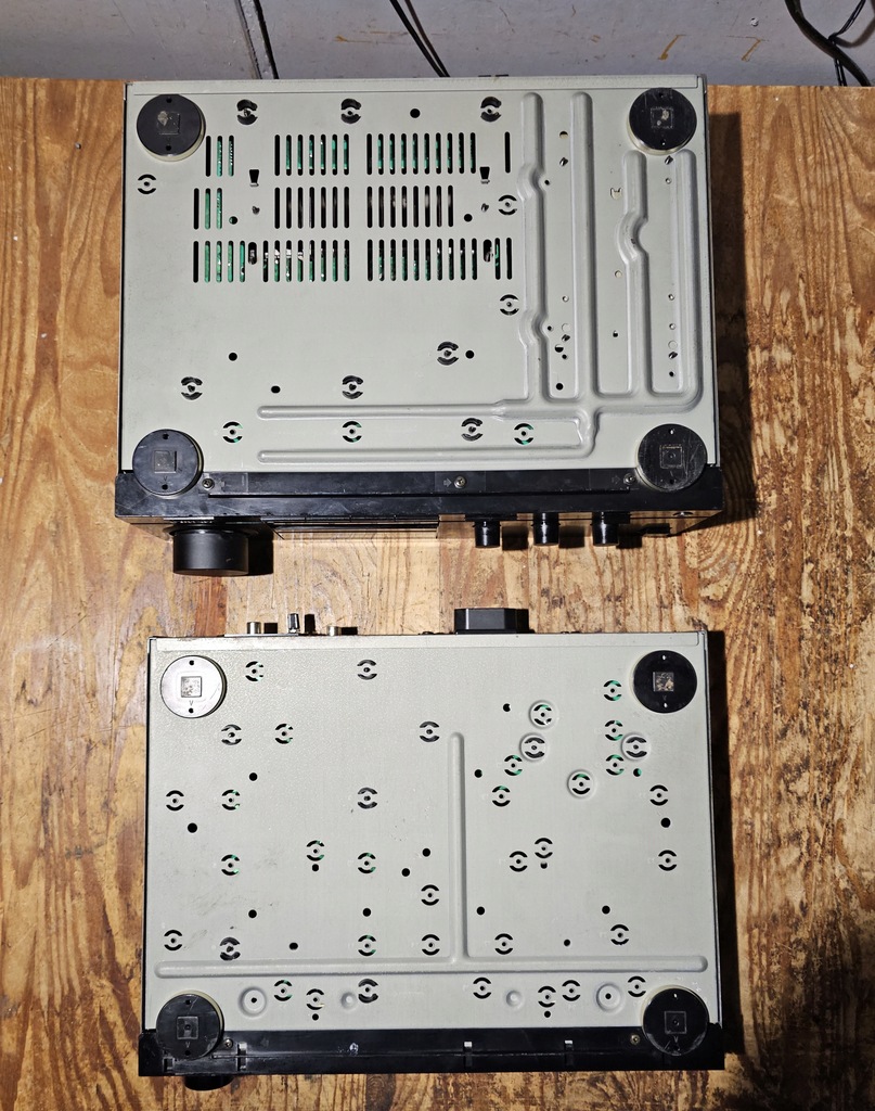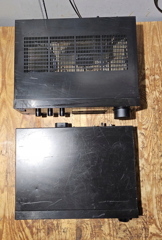 Wzmacniacz gra ładnie na obu kanałach, brak jednego zatrzasku od kabla głośnikowego.