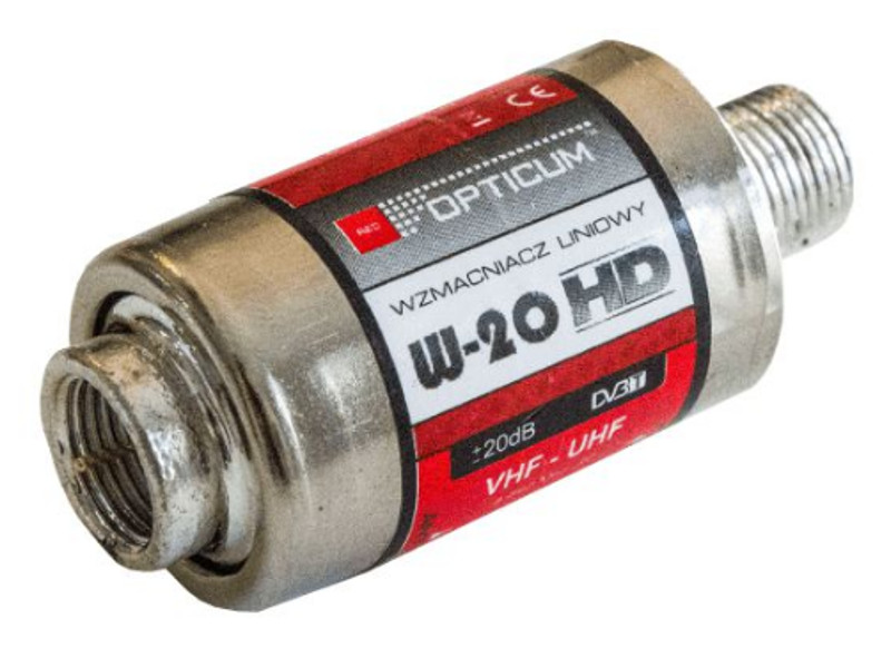 Wzmacniacz OPTICUM W-20 ma zastosowanie wszędzie tam, gdzie sygnał z anteny zewnętrznej (niewyposażonej we wzmacniacz) docierający do odbiornika jest zbyt słaby, co objawia się zacinaniem lub zanikaniem obrazu.