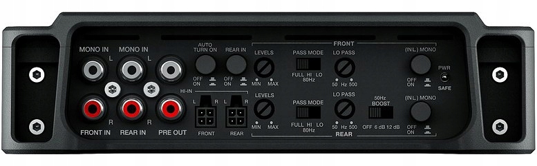 - Wejścia Hi Input: 2 (kanały tył + przód)