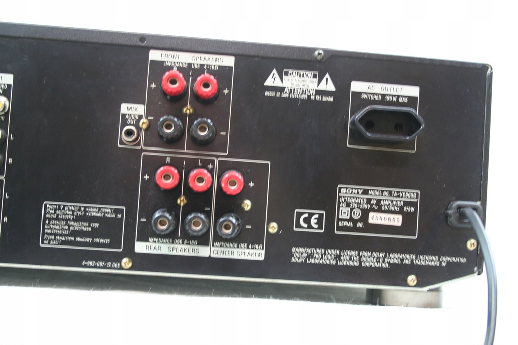 Moc: Surround output: 100W (front), 100W (center), 40W (rear)