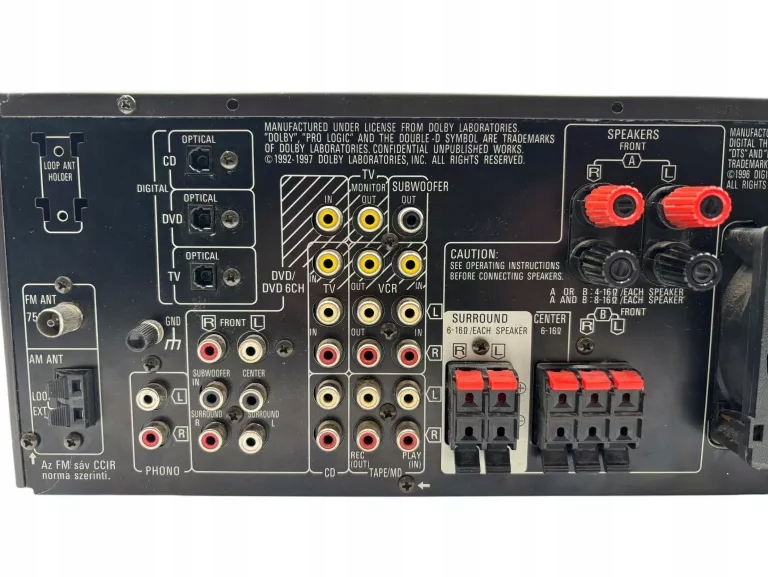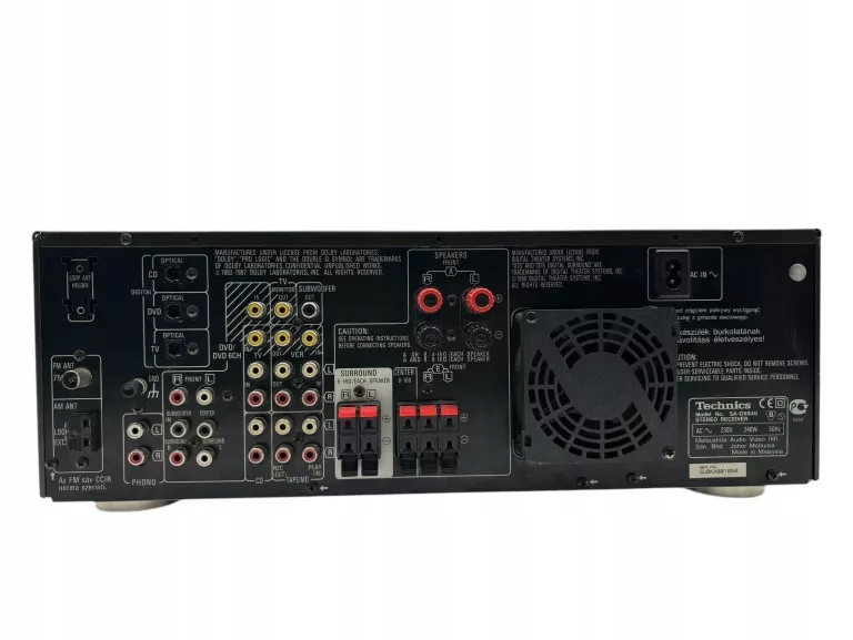Technics SA-DX940 to wysokiej klasy amplituner AV, który łączy w sobie dużą moc, czysty dźwięk i wszechstronność zastosowań. Dzięki mocy wyjściowej 100W na kanał oraz stosunkowi sygnału do szumu na poziomie 80 dB, urządzenie zapewnia dynamiczne i klarowne brzmienie zarówno w systemach stereo, jak i w konfiguracjach kina domowego.