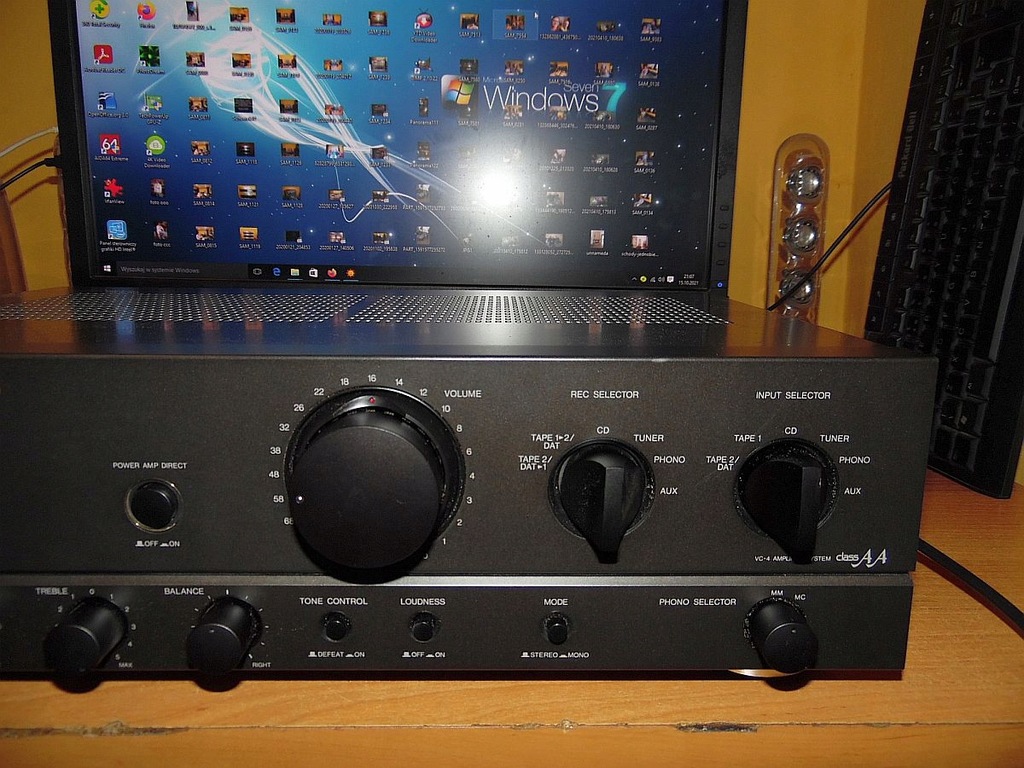 - pozycyjny przełącznik wejsc ( aux , odtwarzacz cd , magnetofon 1 , magnetofon 2 / DCC , tuner , gramofon )