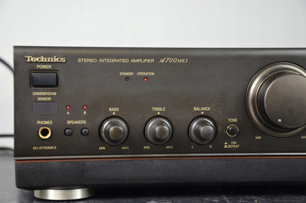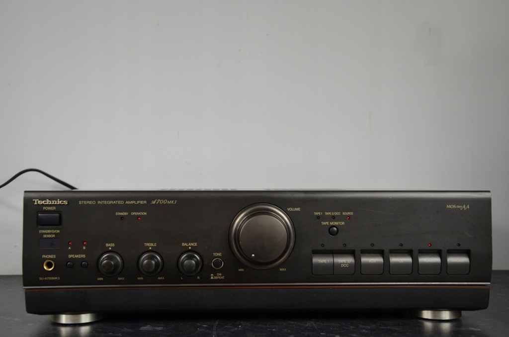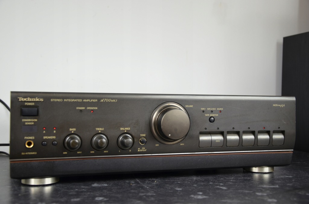 - Posłuchajcie Państwo tego sprzętu a namacalnie odczujecie doskonałość technicznych rozwiązań firmy Technics. Dowodem ich poważnego traktowania muzyki może być ten oto wzmacniacz SU-A700 w którym oryginalny i zaawansowany technicznie układ MOS klasy AA zapewnia niedoścignioną liniowość charakterystyk i wyjątkową jakość dźwięku. Polecam!