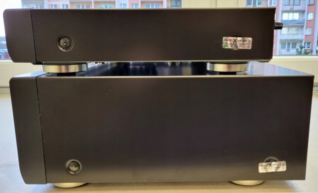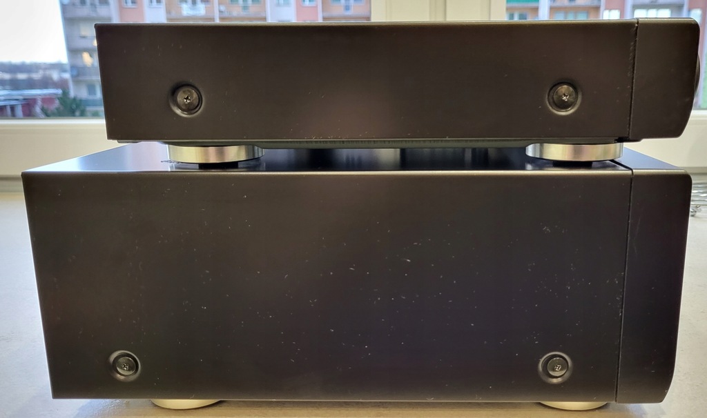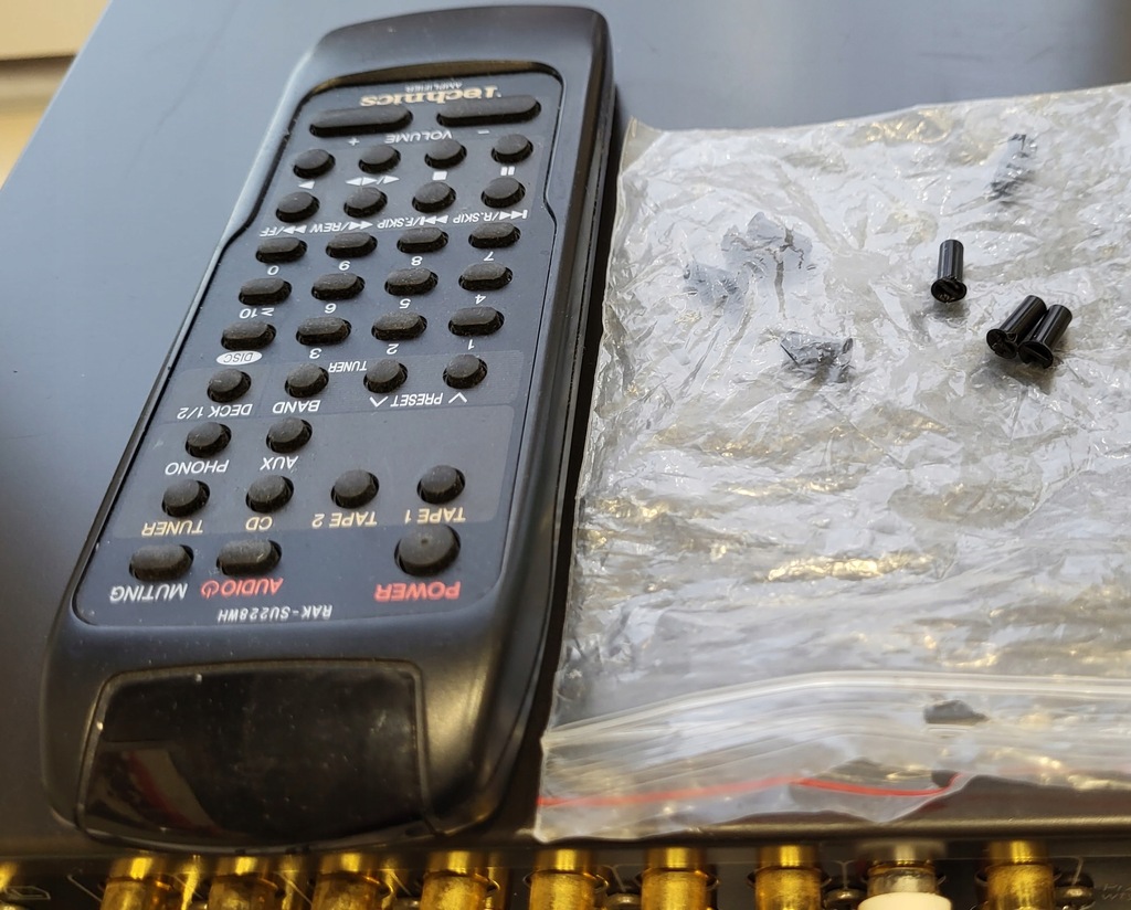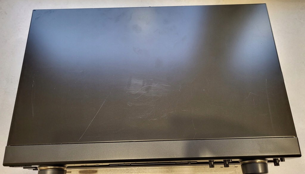 Jestem drugim użytkownikiem tego zestawu. Jest on w pełni sprawny, posiada oryginalnego pilota i stosowne okablowanie / kabel cinch według pierwszego użytkownika zestawu jest oryginalny, pozostałe nie są oryginalne /. Posiada zaślepki końcówek umożliwiających podłączenie głośników, są one w stanie częściowo uszkodzonym / patrz zdjęcie numer 10 / Fronty, obudowy z boków i tyły w stanie dość uszanowanym /patrz zdjęcia numer 1,2,3,5 ,7 /.Na panelu frontowym wzmacniacza mocy widoczna jedna skaza /patrz zdjęcie numer 4/ , lewy bok wzmacniacza mocy patrząc od przodu widoczna skaza /patrz zdjęcie numer 6/ . Górne obudowy mają stan pozostawiający sporo do życzenia /patrz zdjęcia numer 8 i 9 / .Po zakupie wzmacniacz został sprawdzony w pogwarancyjnym serwisie IVITER Sp.z.o.o z/s Plac Konstytucji 5 Warszawa. Serwis ten wystawił dokument udzielający gwarancji na taki stan sprzętu ważny 12 miesięcy. Warunkiem jest nienaruszenie plomb umieszczonych na bokach elementów /patrz zdjęcie numer 3/.Dokument oczywiście zostanie przekazany osobie, która zakupi zestaw.