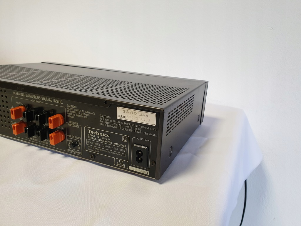 Mam dziś na sprzedaż piękny i unikatowy wzmacniacz Technics SU-V1X. Prawdziwa legenda wsród Technicsa. Znakomita stara konstrukcja na tranzystorach. Wzmacniacz w bardzo ładnym stanie wizualnym jak na swój wiek, technicznie sprawny. W zestawie kabel zasilający.