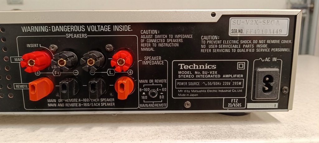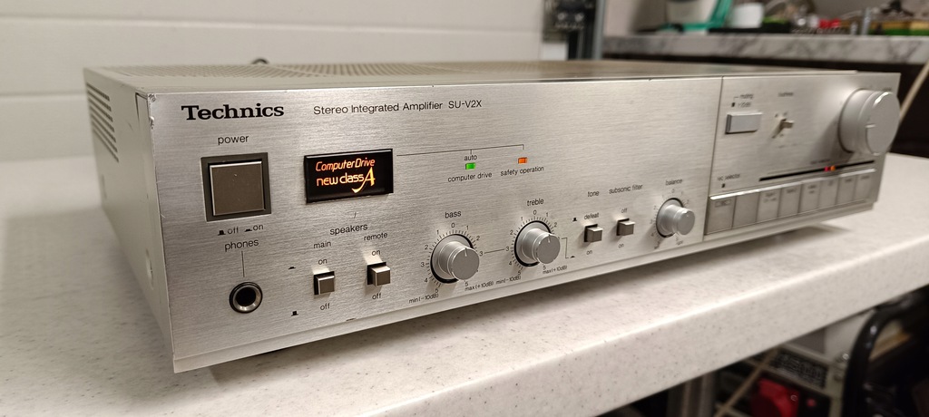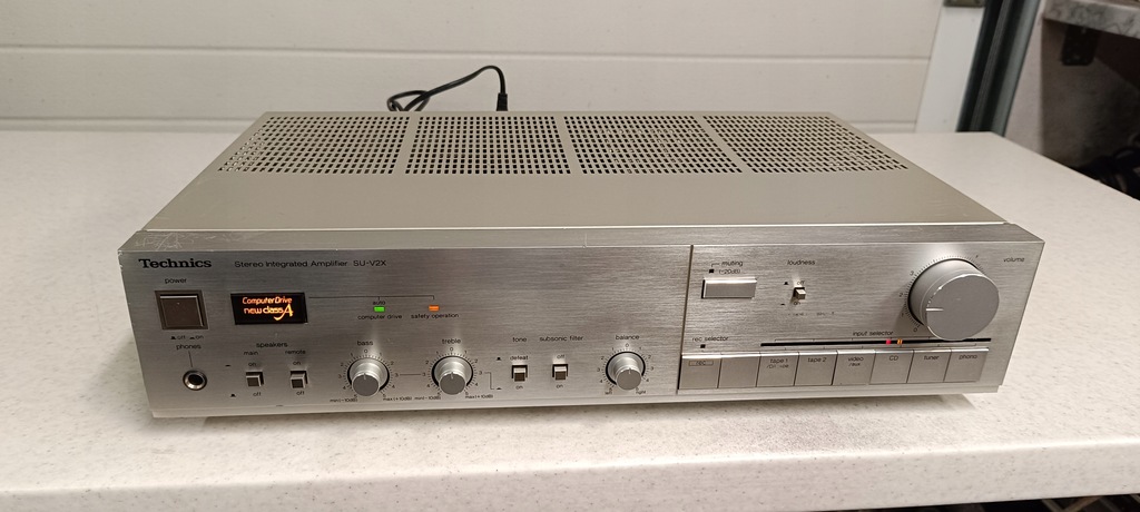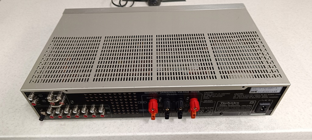 Do sprzedania wzmacniacz stereo Technics SU-V2X w kolorze srebrnym,sprzęt używany w 100% sprawny technicznie w ładnym stanie wizualnym.Wszelkie dane i recenzje dostępne w sieci ,zestaw gniazd do podłączenia głośników A wymieniony na porządne gniazda akceptujące wtyki bananowe.W razie pytań proszę pisać.