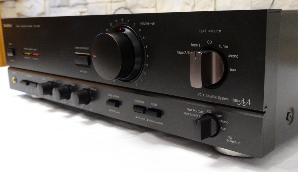 WSZYSTKIE FUNKCJE WZMACNIACZA DZIAŁAJA. POTENCJOMETRY NIE TRZESZCZĄ,JEST BARDZO CIĘŻKI, MASYWNY I STABILNY. ZBUDOWANY JEST Z SOLIDNYCH MARKOWYCH ELEMENTÓW, WYKONANYCH BARDZO PRECYZYJNIE. WARTO TAKZE NAPISAC, ZE FIRMA TECHNICS SŁYNIE Z DOKŁADNOSCI W WYKONYWANIU SWOJEGO SPRZĘTU A ZWŁASZCZA MODELE Z LAT 80-90.