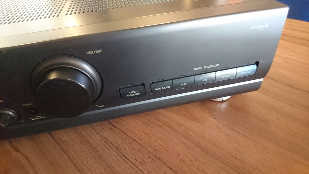 Wzmacniacz używany w bardzo ładnym stanie. Obudowa posiada drobne ryski widoczne na zdjęciach. Przód jest bardzo łady. Samo pokrętło posiada również ryski.