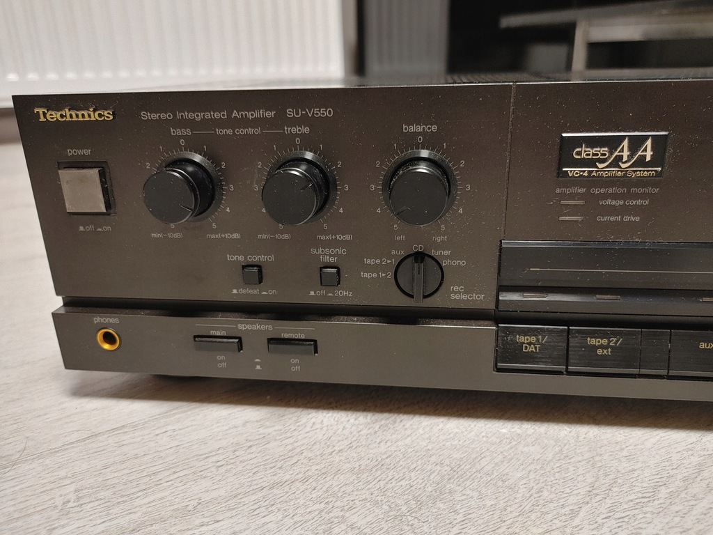 Witam, na dzisiejszej aukcji do sprzedania mam potężny wzmacniacz Technics SU V550. Sprzęt jest w 100% sprawny (przydałoby się przeczyścić potencjometry). Stan wizualny jak na zdjęciach.