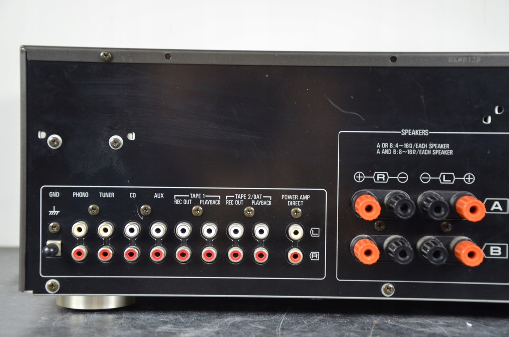 - 6 wejść audio: TAPE1 – TAPE2 – CD – TUNER – AUX – PHONO MM/MC