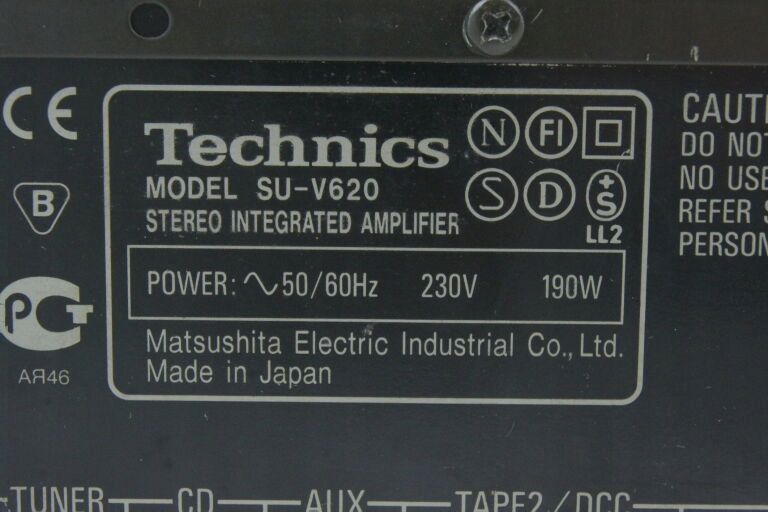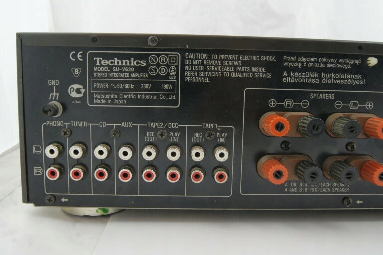 - - Wejścia/Wyjścia: Phono (gramofon) , CD, Tape2/DAT (magnetofon), Tuner (radio), Aux/Video, Tape1/MD, Monitor