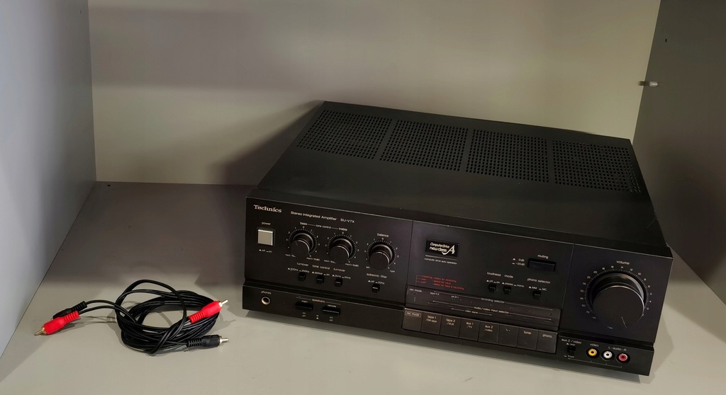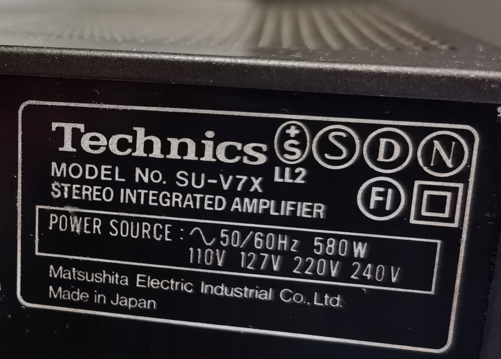 Jest to bez wątpienia jeden z najbardziej udanych "piecyków" Technicsa. Uważam że jest to jeden z najlepszych wzmacniaczy w tej cenie. Prawdziwy kolos. Zbudowany na ogromnym transformatorze i imponujących kondensatorach , końcówka mocy tradycyjna na tranzystorach. Potrafi poszczycić się niesamowitą mocą ponad 155 wat na kanał. Dźwięk z tego wzmacniacza jest po prostu świetny. Gra on znacznie lepiej od wzmacniaczy dzielonych tej marki typu SU-A900 , a już całkiem deklasuje nowe konstrukcje zintegrowane. Dźwięk z SU-V7X jest żywy, szybki, detaliczny oparty na dużej ilości basu, ale ten jest wysokiej jakości dobrze kontrolowany, przy głośnym słuchaniu nie zlewa się z pozostałymi pasmami. Jakość wykonania od razu widać że to klasa sama w sobie. Wzmak jest bardzo masywny, konstrukcja jest sztywna, waży 13 kg, panel przedni jest z aluminium.