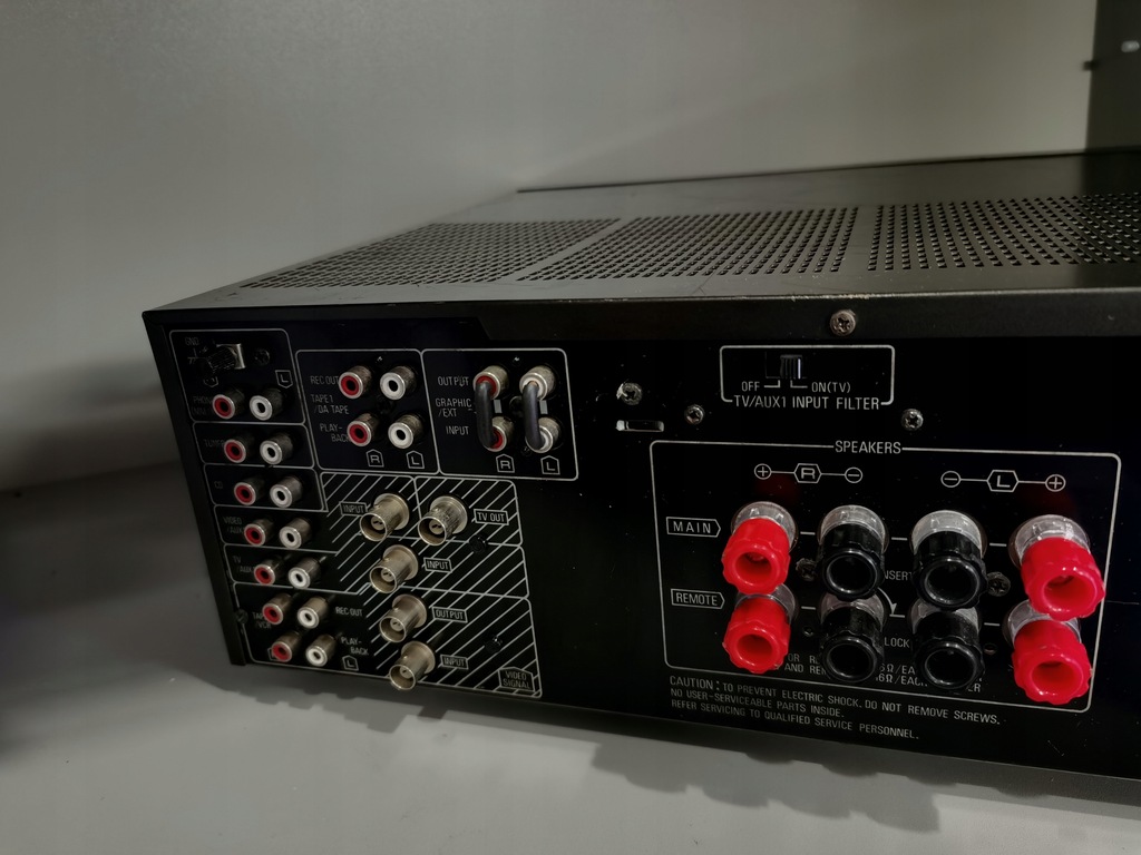 Oparty na tranzystorach co ma ogromne przełożenie na jakość dźwięku - wzmacniacz jest nieporównywalnie lepszy od Technicsów na hybrydach Svi, nie mówiąc o plastikach które dziś produkcją...