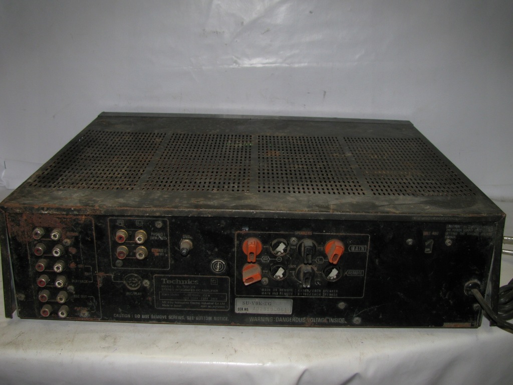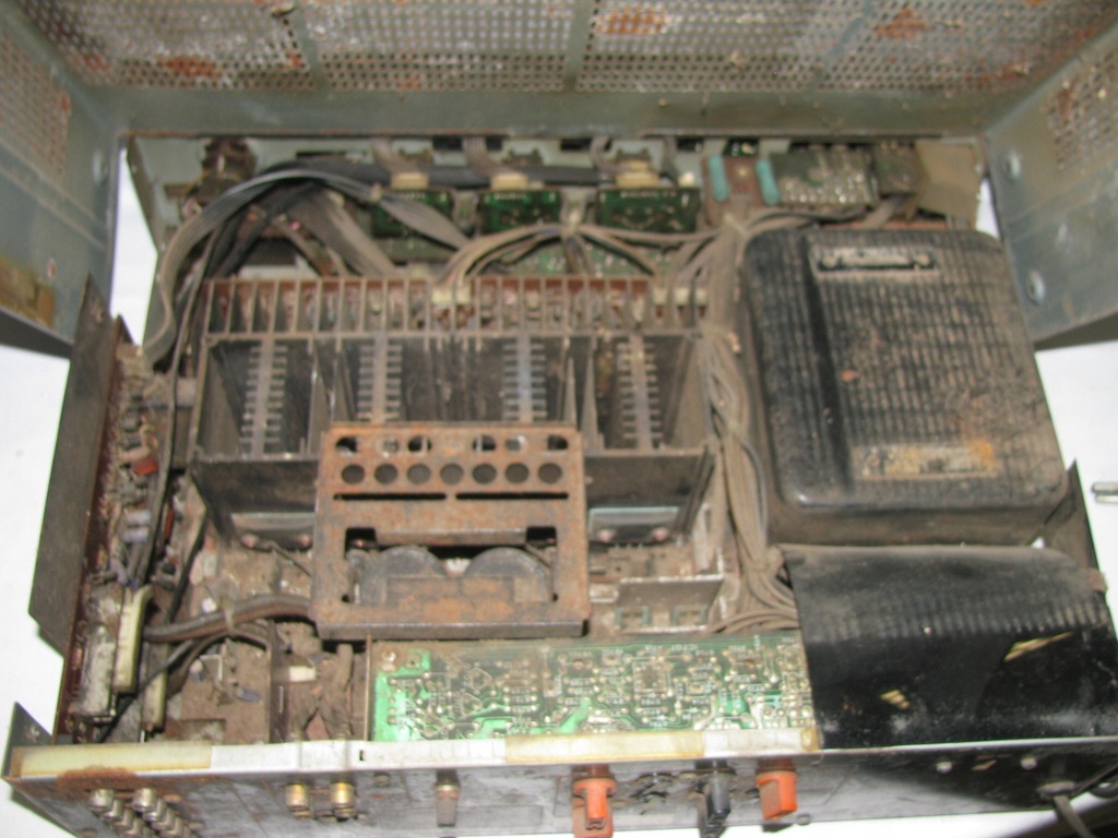 Stan jak na zdjęciu, włącza się, reaguje, nie sprawdzany, brak klapki, brudny, ślady korozji, na części, loudness, 4 kanały, A/B, brak śrub obudowy, wygląda jak na zdjęciach.