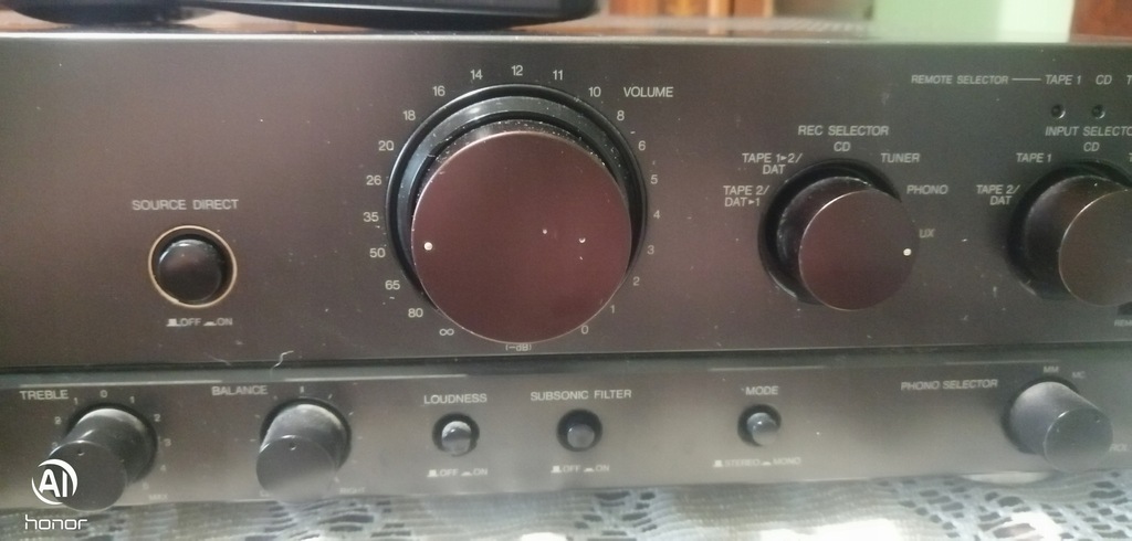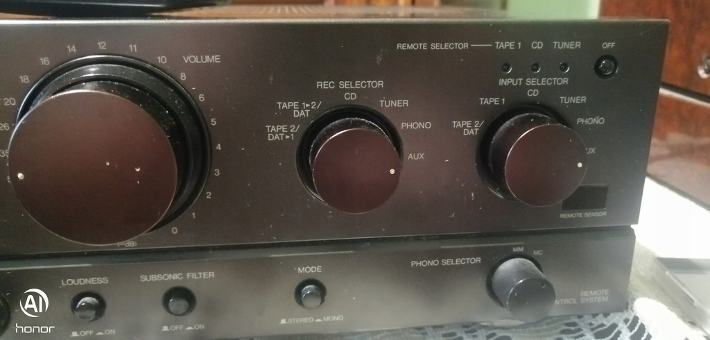 Sprzedam jak w tytule wzmacniacz sprawny wszystko działa poprawnie sprzedaję to co na zdjęciach pilot sprawny jeden klawisz wykruszony Polecam