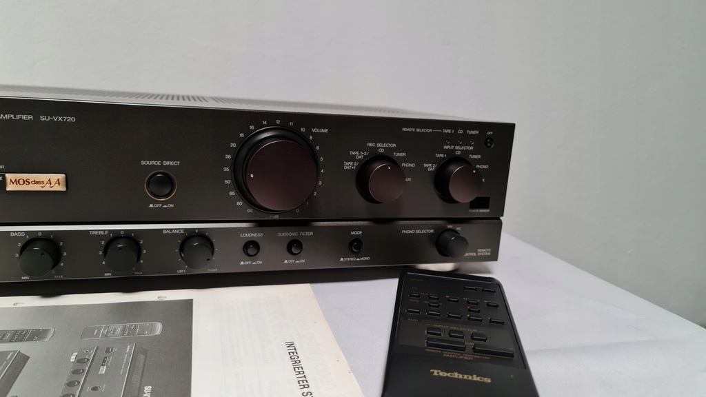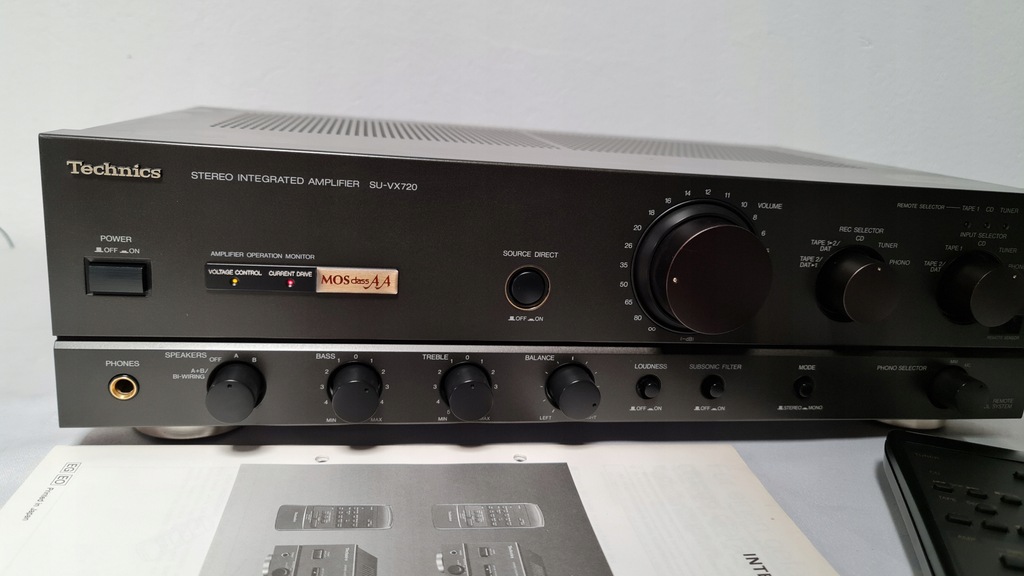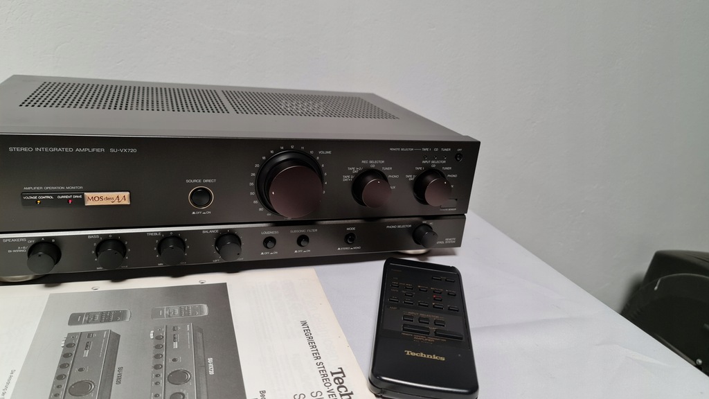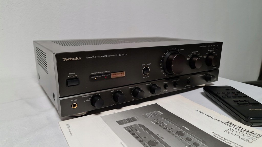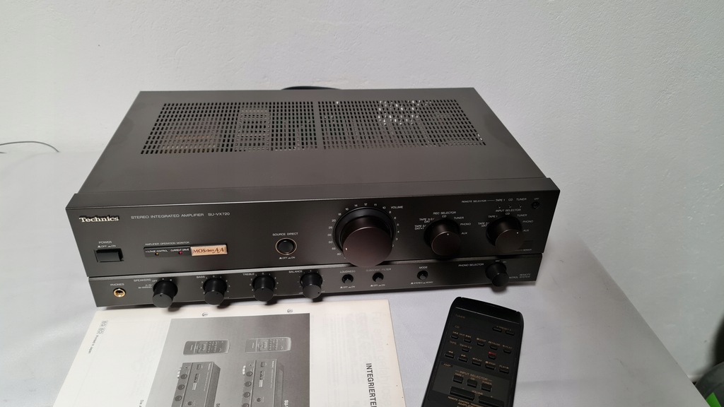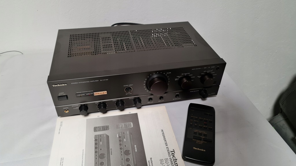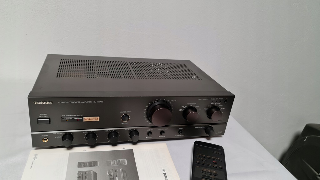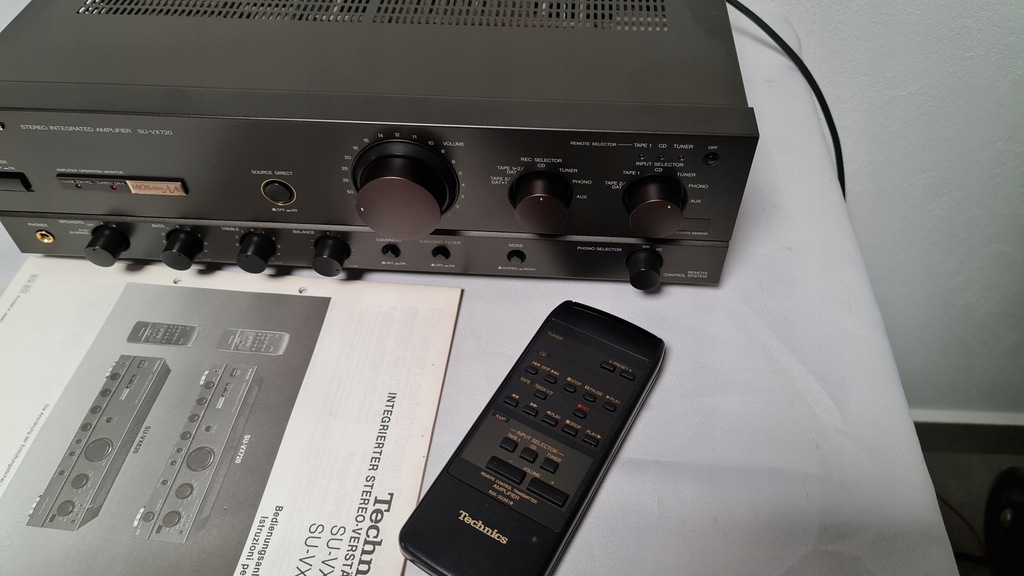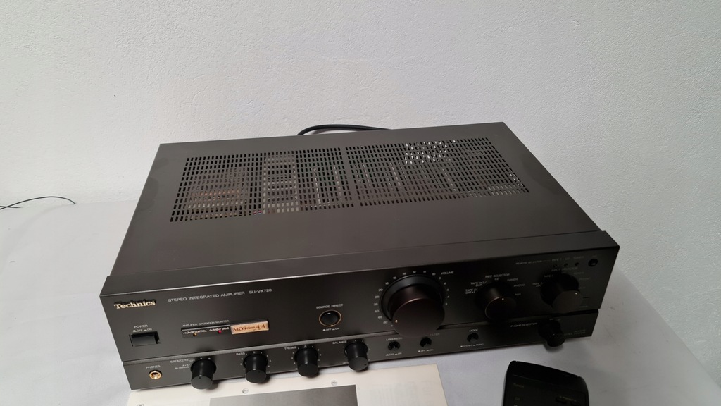 Mam dziś na sprzedaż świetny japoński wzmacniacz Technics SU-VX720. Sprzęt w idealnym stanie wizualnym , technicznie działa idealnie , wszystkie potencjometry działają idealnie bez szumów. Sprzęt 100% oryginalny . W zestawie oryginalny pilot zdalnego sterowania co jest rzadkością, oryginalna instrukcja obsługi i kabel zasilający.