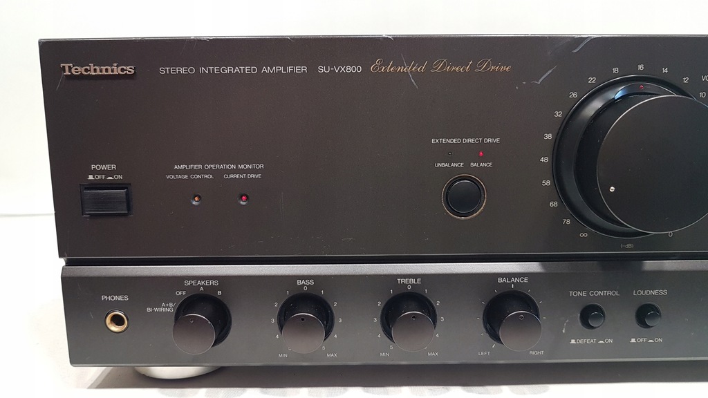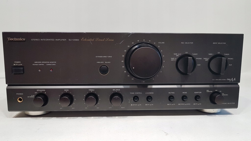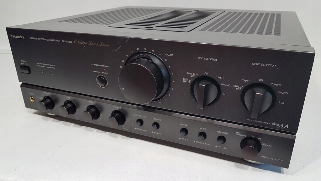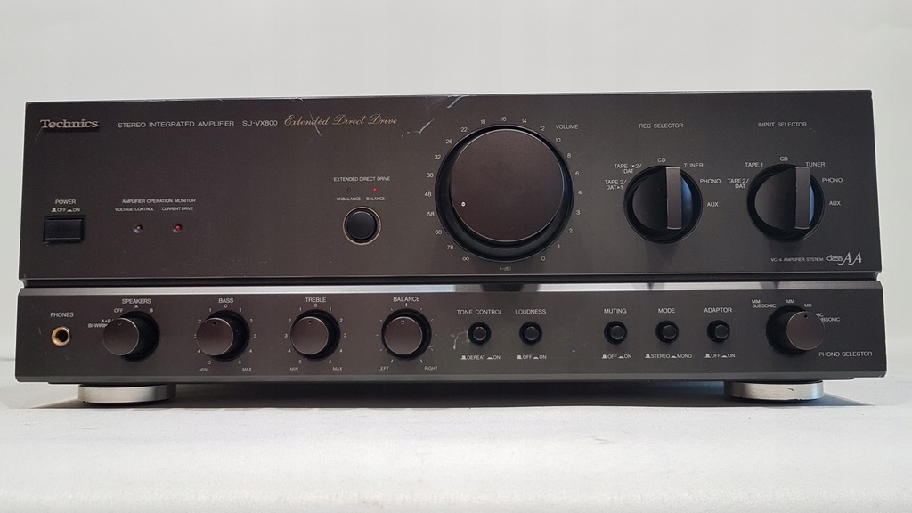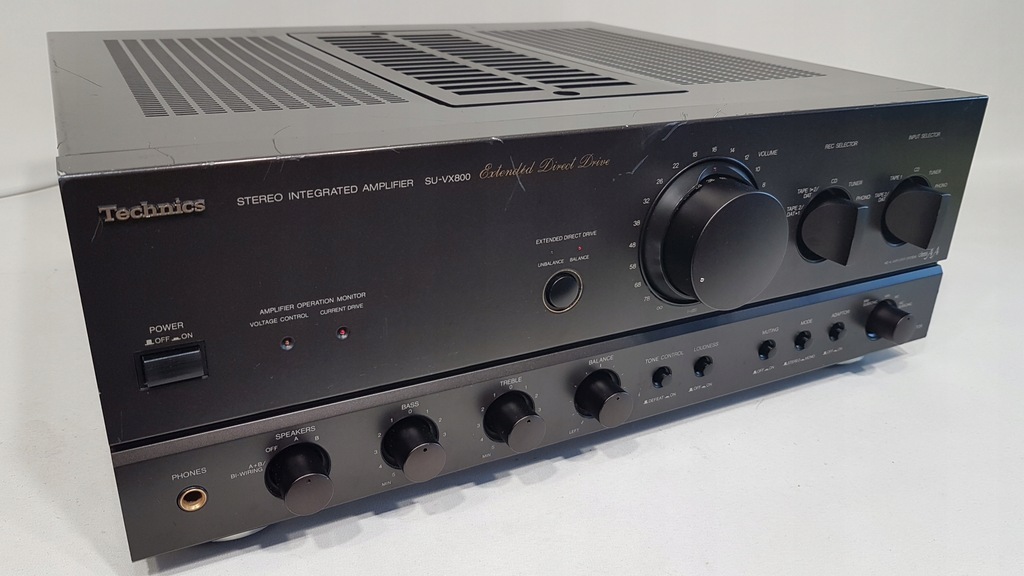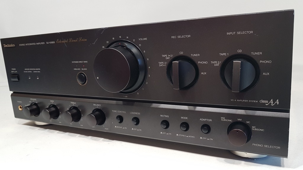 Zapraszam do zakupu wzmacniacza TECHNICS model SU - VX800. Potężny wzmacniacz na dwóch transformatorach, mocny i bogato wykonany. Granie na najwyższym poziomie. Dobry wzmacniacz do gramofonu rozbudowany przedwzmacniacz gramofonowy dla wkładek MM oraz MC no i przy czym przydatny filtr SUBSONIC, po za tym funkcja ADAPTOR gdzie można wpiąć np. korektor oraz warto wspomnieć o wejściach bezpośrednich zbalansowanych i nie zbalansowanych. Wzmacniacz w stanie oryginalnym ale wymagał kompletnego przeglądu, odkurzenie i wyczyszczenie, wszystkie przełączniki, potencjometry, przekaźniki każdy po kolei rzetelnie wyczyszczone, poprawione zimne luty. Kawał dobrego klocka tak że jest co polecić. Super extra bezpiecznie spakowana wysyłka w cenie. Polecam.