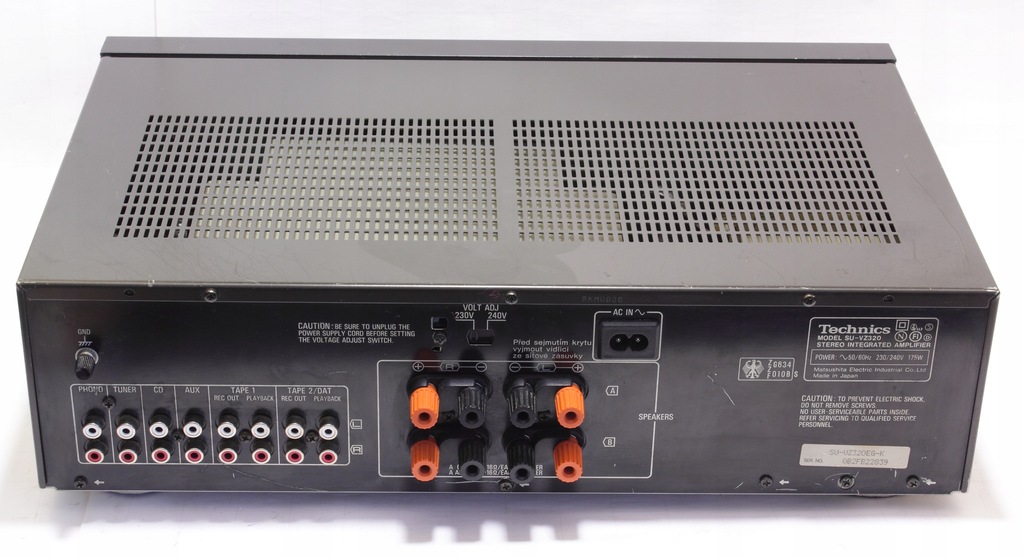 Oferuję na sprzedaż wzmacniacz Technics SU-VZ230. Po podłączeniu kolumn do wzmacniacza w głośnikach słychać szumy i trzaski, kanały czasem przerywają. Prawdopodobnie jest to wina zimnych lutów lub słabych styków ponieważ wzmacniacz reaguje na lekkie stuknięcie w obudowę. Potencjometry i przełączniki do przeczyszczenia ( trzeszczą i przerywają. Brak przewodu zasilającego. Ze względu na powyższe sprzedaję jako uszkodzony z przeznaczeniem do naprawy.