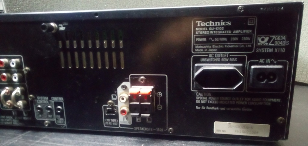 Przedmiotem sprzedaży jest wzmacniacz TECHNICS SU-X102.